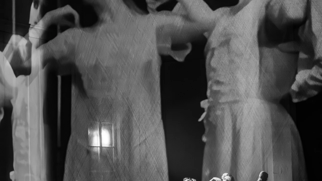 Der Versuch steht: Kann ein Stück, das in den Kanon der Tanzgeschichte eingegangen ist, beinahe 50 Jahre später, mit neun verbliebenen Original-Tänzer:innen, neu in Szene gesetzt werden? Meryl Tankard, die bereits 1978 bei der Erstaufführung Ensemblemitglied war, setzt auf Projektionen der damaligen Filmaufnahmen auf dünnen, durchsichtigen Gaze-Stoff. Diese Schwarz-Weiß-Tanzszenen sind in das Stück fast durchgehend integriert, wirken wie Hologramme mal klein, mal groß projiziert. Auf diese Weise ist das ursprüngliche Tanzensemble präsent.